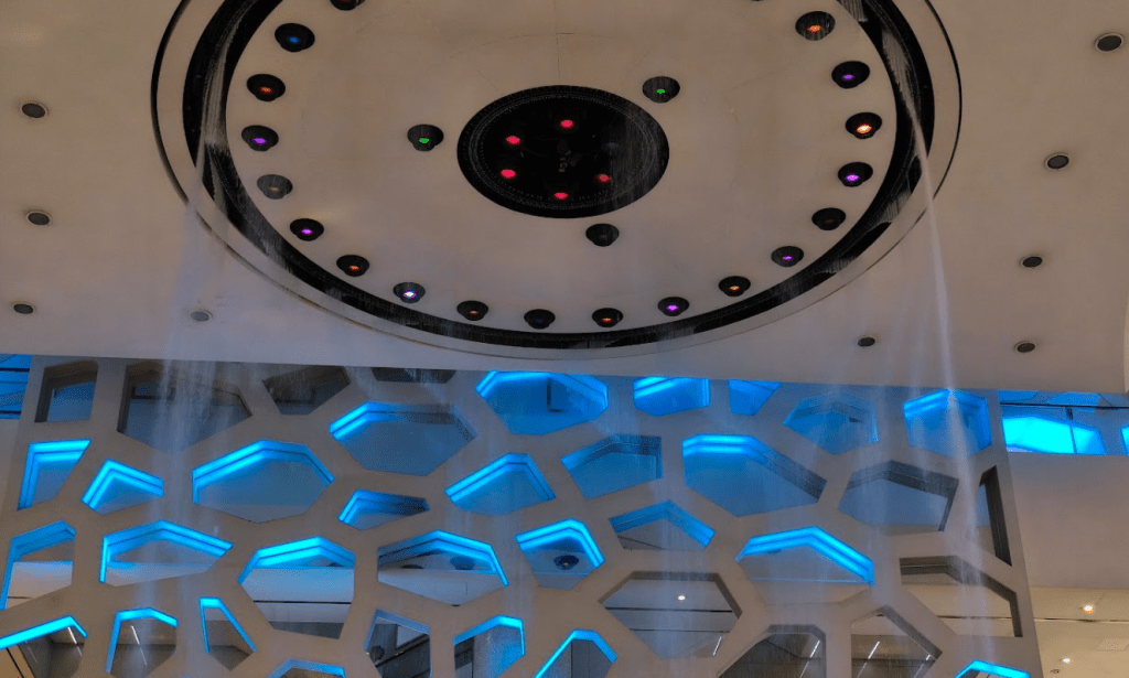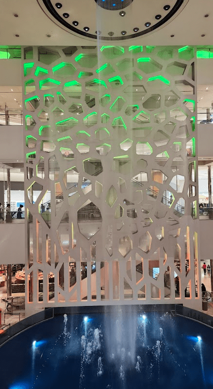 Aquesta vegada sí que vam poder accedir al mirador situat a la part alta de l’edifici, i també a la font interior més alta del món, a la planta baixa. El mirador és ampli i ofereix diferents perspectives tant de l’entorn urbà com de la zona de platja. Per accedir-hi, vam agafar l’ascensor fins a la planta 11 i vam pujar dos pisos més per escales.