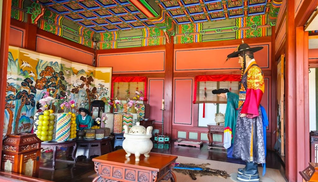 El palacio tiene muchas salas decoradas con maniquíes que recrean escenas históricas: el rey, la reina, eunucos, banquetes… Estuvimos más de una hora recorriéndolo. En algunas de las estancias hay sellos de tampón, para los coleccionistas, que se pueden recoger en diferentes puntos. Nosotros conseguimos media docena, pero había más, de unos 10×10 cm.