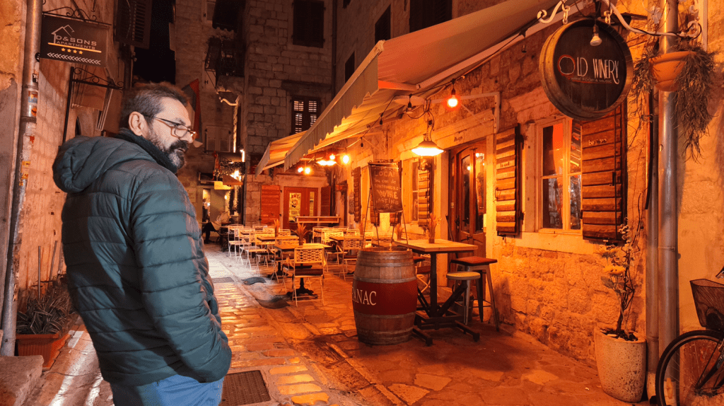 A las 16:15 ya empieza a cerrarse el día y a las cinco de la tarde es noche cerrada. Nuestro plan para ese primer día era sencillo: llegar a Kotor y dar un primer paseo nocturno por el casco histórico.