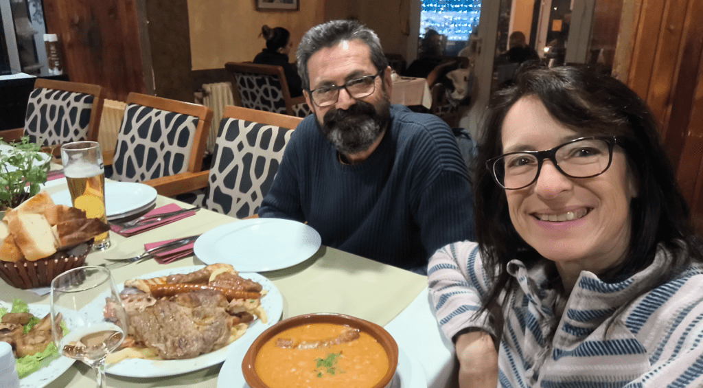 Cenamos en una taberna tradicional cercana al alojamiento. Tras el tute de coche y el estrés de los camiones, una cena tranquila y el calor del apartamento fueron el cierre perfecto para el día.