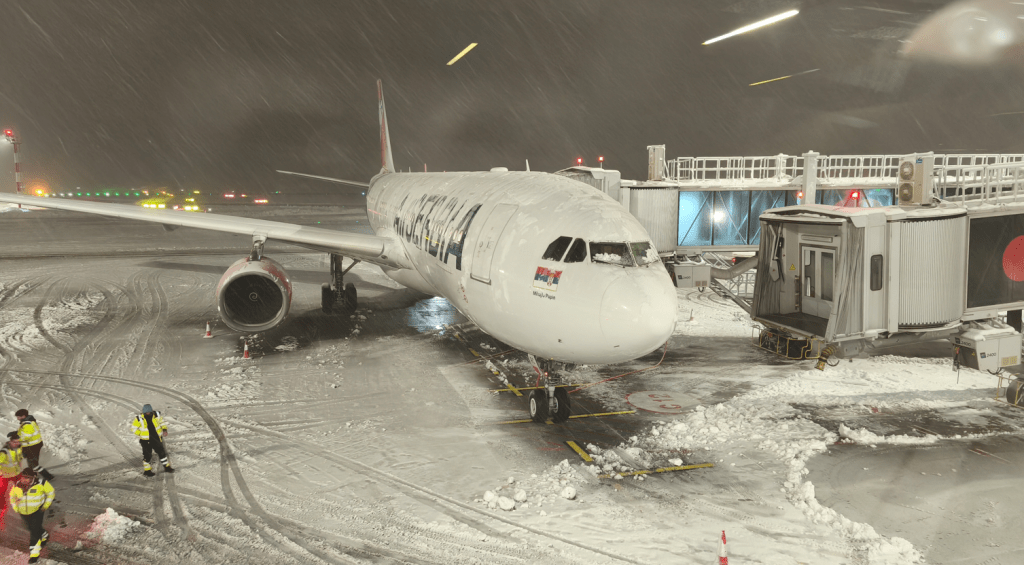 A partir de ahí, estuvimos pendientes de las pantallas del aeropuerto, que fueron aportando información poco a poco y reprogramando, y finalmente acabamos saliendo unas cinco horas más tarde. El embarque comenzó algo antes, pero el movimiento por pista fue lento: hubo que esperar a que limpiaran las alas del avión porque seguía nevando con fuerza. El vuelo en sí fue muy tranquilo, sin turbulencias, pero llegamos a Barcelona cerca de la 1 de la madrugada. Estamos convencidos de que tuvimos mucha suerte, porque a lo largo de la tarde y la noche varios vuelos fueron cancelándose y la situación se iba complicando cada vez más debido a que no dejaba de nevar.