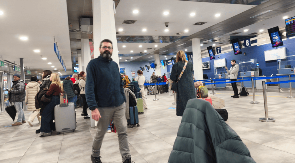 El día resultó, climatológicamente hablando, muy intenso. En Tivat llovía, pero en Belgrado había una gran nevada que generó retrasos y cancelaciones durante toda la jornada. Tuvimos suerte, porque el avión que debía llevarnos a Belgrado venía precisamente de allí; llegó con más de una hora de demora, lo que en teoría nos haría perder nuestra conexión. Sin embargo, justo antes de despegar y quedarnos sin internet, vimos que nuestro siguiente vuelo también se había retrasado. Así, bajo un aeropuerto de Belgrado absolutamente cubierto de nieve, las pantallas fueron actualizando la información hasta que, finalmente, salimos con 5 horas de retraso en un plácido viaje de vuelta a casa.