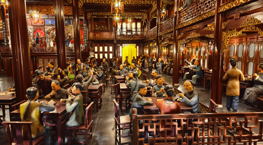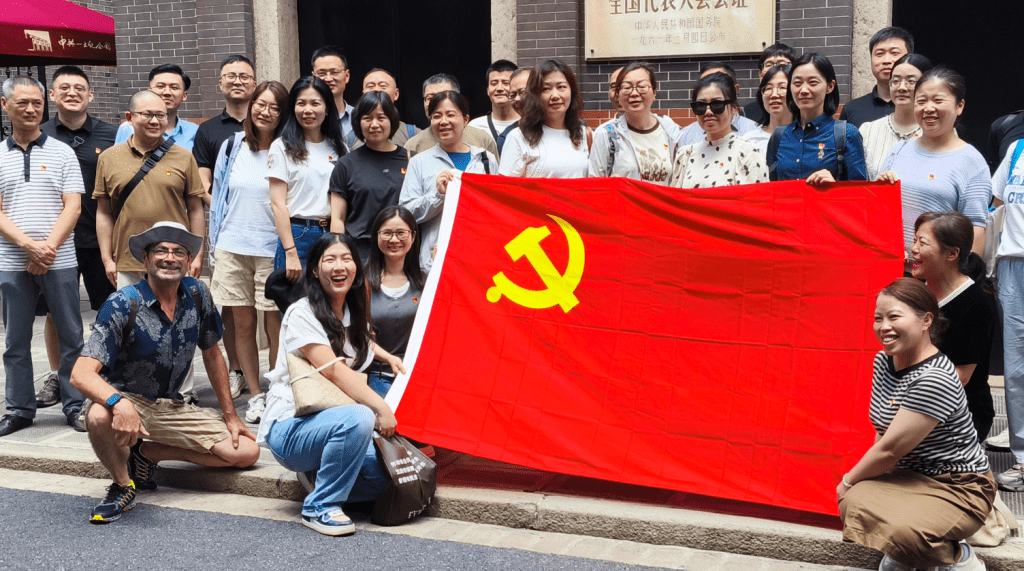 Terminamos la mañana en Xintiandi, barrio de casas antiguas donde se celebró el Primer Congreso Nacional del Partido Comunista Chino. Hoy, la casa es un museo gratuito donde se puede visitar la sala donde Mao Zedong y los delegados fundaron el partido en 1921. El ambiente era animado, con grupos haciéndose fotos con la bandera comunista. Justo al lado, accedimos a otro museo también gratuito.